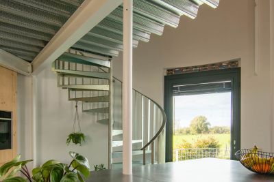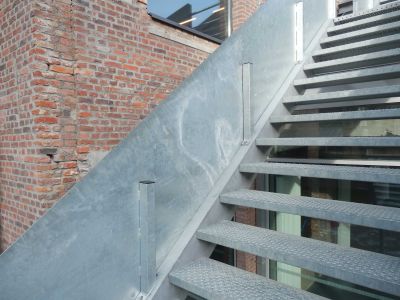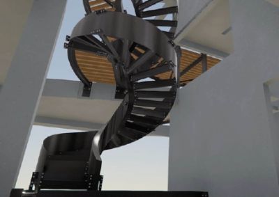 • Tekst: <p>Le nouvel escalier en colimaçon dessert plusieurs niveaux d'un penthouse dans un bâtiment existant. La construction comprend l'escalier elliptique en colimaçon avec des plaques torsadées ainsi que les différents niveaux du penthouse.</p><p> L'escalier repose sur une lourde poutre en béton qui a été exposée et mesurée avec précision. Le modèle 3D a ensuite été utilisé pour traduire la torsion de l'escalier en dessins exécutables, en alignements de dalles et en assemblage de la structure. </p><p>Bien que l'escalier en colimaçon ne pèse que 4,2 tonnes au total, il a été divisé en plusieurs parties de construction. Ces pièces ont en fait été hissées au sommet du penthouse et introduites par une étroite ouverture sur le toit du bâtiment. Les différentes parties de la construction ont ensuite été soudées ensemble sur place. Des accouplements d'assemblage ont été utilisés pour maintenir les relations entre les différentes parties de la construction.</p>