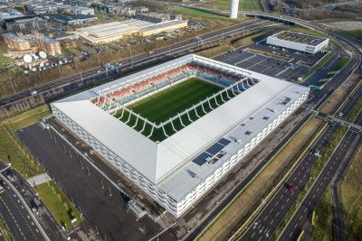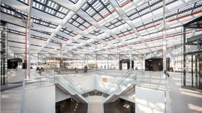 • Tekst: <p>Bruges a enrichi son patrimoine d&rsquo;un bâtiment important, le « Bruges Meeting &amp; Convention Centre » (BMCC), situé non pas en périphérie, mais à l&rsquo;intérieur de la ville historique et de la ceinture d&rsquo;eau de la cité médiévale. La brique rouge-brun a été choisie pour les façades extérieures, la palette de couleurs dominantes de la ville. Le Bruges Meeting &amp; Convention Centre (BMCC) comprend un hall d'exposition multifonctionnel et un espace de conférence pouvant accueillir plus de 500 participants.<br> </p> <p>Le hall d'exposition de 4480 m2 repose sur un piédestal en verre, attirant la place extérieure à l'intérieur comme une place couverte. Il s'agit d'un espace élevé dont les dimensions des baies sont de 15/30/15 m et qui repose à l'intérieur sur seulement six colonnes circulaires en béton de 1,20 m d'épaisseur. Six fermes secondaires et deux fermes primaires en acier transfèrent les charges des fermes secondaires aux six colonnes via une imposition architecturale articulée. L'entrée de la salle de conférence est dominée par un impressionnant porte-à-faux de 60x6 m qui assure une transition progressive entre le parvis et l'entrée.</p>