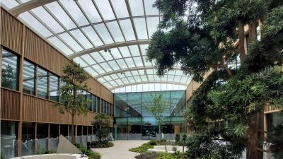 Structure en acier pour d’imposants bureaux et salle d’exposition