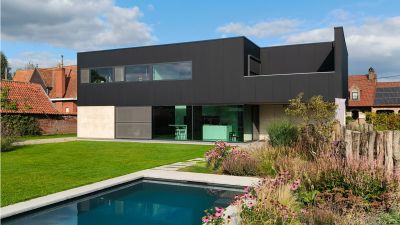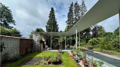 • Tekst: <p>Rien n&rsquo;est moins évident que de rénover une ancienne habitation, surtout si celle-ci date du dix-huitième siècle et qu&rsquo;elle est quasi isolée du jardin. Le respect du bâtiment existant et la recherche de solutions contemporaines ont été à l&rsquo;origine de cette rénovation absolument remarquable.</p> <p> Le garage, qui avait peu de valeur, a été démoli pour le remplacer par une structure en acier totalement orientée vers le jardin, abritant le nouveau séjour. L&rsquo;ossature métallique permet de distinguer sur le plan visuel et architectural les parties nouvelle et ancienne : le bâtiment existant, caractérisé par ses murs en briques pleines magnifiquement restaurés, et la nouvelle construction avec ses contreventements, ses colonnes HEA 200 servant de structure portante et parées de tôles murales ainsi que de plaques de toiture appropriées.</p>