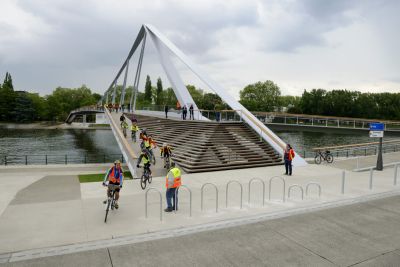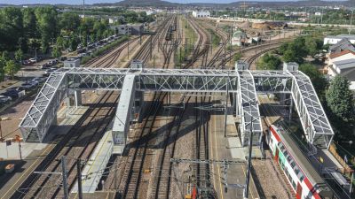 Pont cycliste au-dessus du faisceau ferroviaire