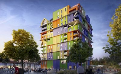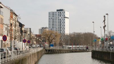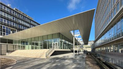 • Ondertitel: L’imposant immeuble est un nouveau point de repère dans la région.