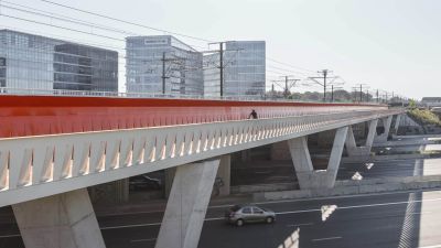 • Tekst: Albi (près de Toulouse, FR), une ville au riche passé tumultueux, a obtenu en juillet 2010 le statut de patrimoine mondial de l’UNESCO pour son centre historique. C’est dans ce contexte qu’est née l’idée de créer une passerelle cyclo-piétonne qui agirait en porte-à-faux d’un viaduc ferroviaire du XIXe siècle.
