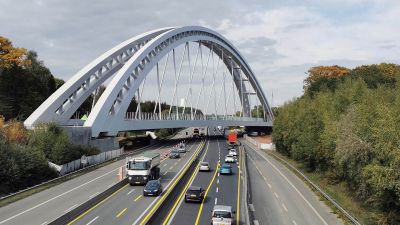 • Tekst: Le nouveau pont bow-string métallique a une portée de 68 m. Il prend appui sur deux culées en béton qui présentent un porte-à-faux dans la continuité du pont. L’ouvrage est un pont intégral. Il n’est donc pas nécessaire de placer des joints de dilatation entre le tablier du pont et les culées. Puisque cette typologie structurelle était une première en Région Wallonne, l’ouvrage a été instrumenté afin de suivre son comportement dans le temps